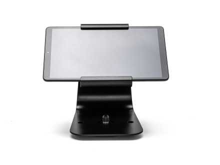 - The POS-mate Universal Tablet Stand has a compact, solid steel construction and is perfect for use in your point of sale environment. The simple attachment system secures your tablet, the soft silicone protects your tablet from scratches. The POS-mate Universal Tablet Stand is engineered to rest on your countertop or be fastened with screws for extra security. Alternatively, you can attach it magnetically to your POS-mate Cash Drawer. The 180° swivel base ensures your tablet can be rotated towards your customer to use, without the need to lift or remove the tablet from the stand.