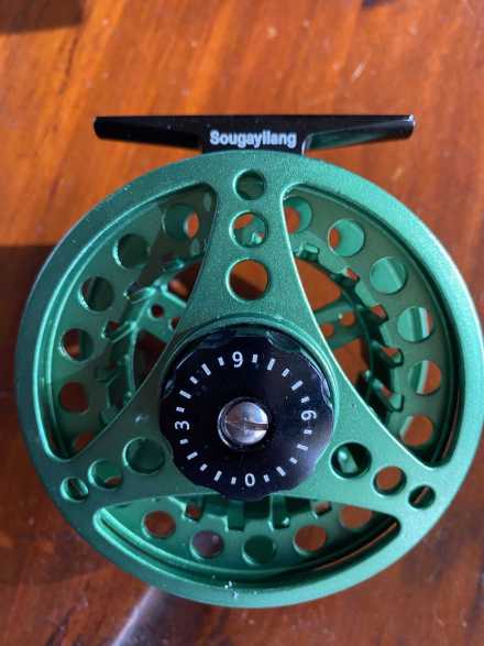 #36 5-weight line and reel kit - Scientific Anglers Amplitude WF-5-F smooth fresh water floating fly line with four tapered leaders, donated by Pat Gillies, and a fly reel, 24 flies (from Rod Bailey) and two spools of mono
