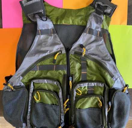 #42 Fishing Vest and fly box and 20 Bush Creek flies donated by Rod Bailey
