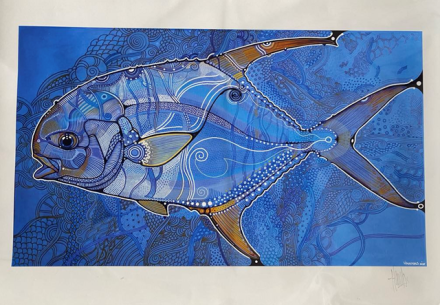 Our generous supporter, Trevor Hawkins, created this beautiful print - a stunning Permit in shades of blue, signed by the artist