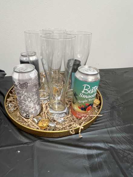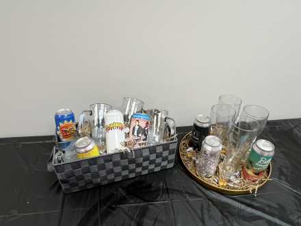 Fall is a great time to experiment with the many flavors of specialty beers. Enjoy eight brews from Crafted Roots, Sterling, using the four Sonoma beer mugs and four Living Quarters long-neck pilsner glasses. Flavors include pineapple and watermelon and triple berry Berliner-style Weisse beer, two India pale ales, Doppelbock, soft sour ale with raspberries and peanuts, wheat ale and peanut caramel apple ale, all contained in gray basket and gold tray.