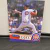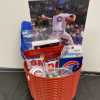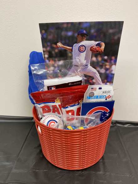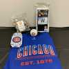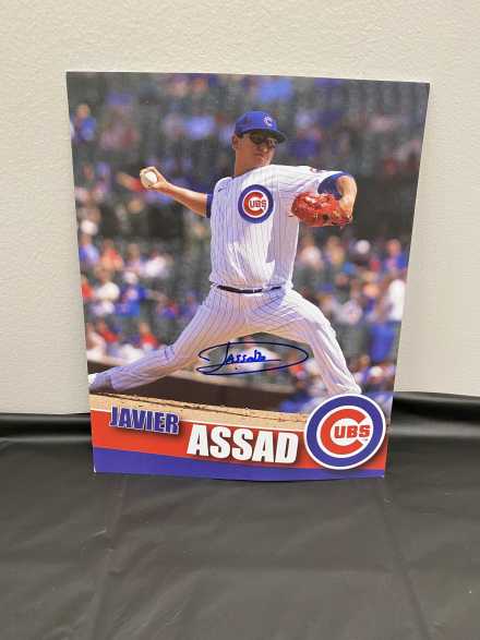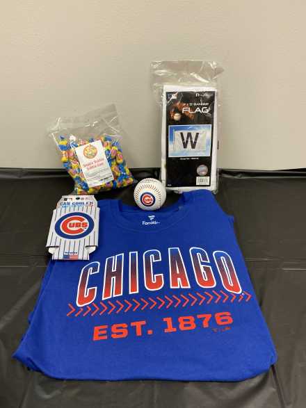 Cubbies fans, may we have your attention? Includes autographed photo of Cubs pitcher Javier Assad, who has a 7-5 record with an ERA of 3.34 and 121 strikeouts in 28 appearances this season. He has played three seasons with the Cubs. Also includes size M Cubs t-shirt, 3 X 5 foot "W" flag, three bags of sunflower seeds, Cubs logo baseball, and Cubs koozie, all in a red tote.