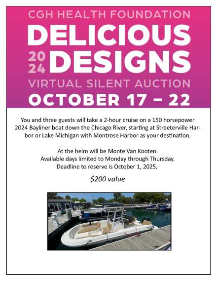You and three guests will take a 2-hour cruise on a 150 horsepower 2024 Bayliner boat down the Chicago River, starting at Streeterville Harbor or Lake Michigan with Montrose Harbor as your destination. At the helm will be Monte Van Kooten. Available days limited to Monday through Thursday. Deadline to reserve is October 1, 2025.
