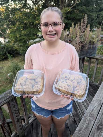 Baked by 7th grader Keagan Bruins, Morrison. She learned how to make Monster Cookies during the pandemic with her Mimi. She started making them, sharing with friends and family to brighten their day. She has perfected the recipe and says she has a secret ingredient. Those who have been lucky enough to have them would say it is the love she puts into them!