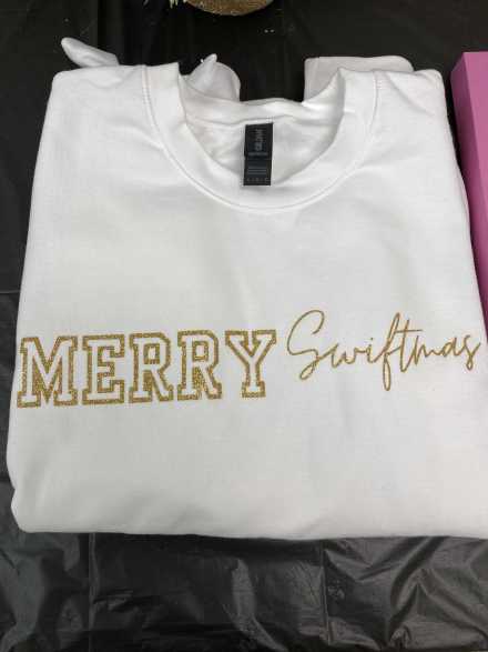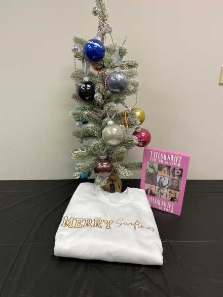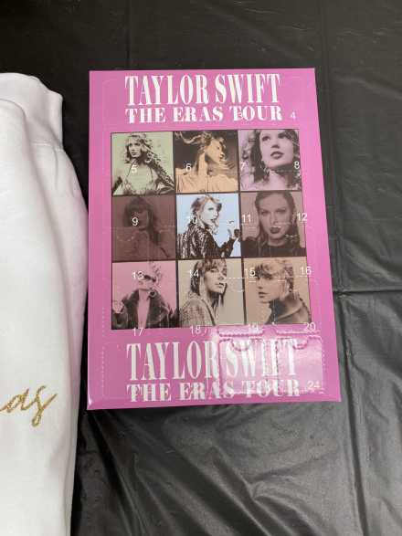 Your Swiftie will love the size L "Merry Swiftmas" white crewneck sweatshirt and Taylor Swift The Eras Tour advent calendar.