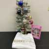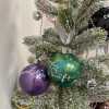Here's a very special gift for that Swiftie in your life - a Merry Swiftmas Christmas tree - loaded with 11 brilliant glittery globe ornaments! Handmade by Sierra, the large baubles represent colors on each of Taylor Swift's album covers. The trunk of the 32-inch snow-covered faux evergreen tree is wrapped in a burlap bag base.