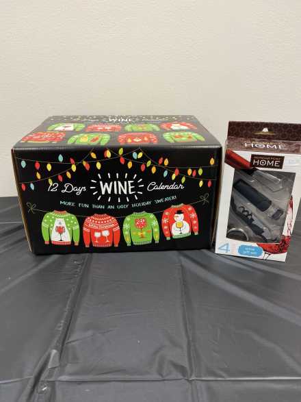 Celebrate the 12 Days of Christmas with a special wine each day. It's more fun than an ugly holiday sweater, as worn by the various adorable stuffed friends. Includes Cabernet Sauvignon, Chardonnay, Zinfandel, Cabernet-Syrah Blend, Cabernet-Merlot Blend, Red Blend, Pinot Noir, Pinot Grigio, Sweet Riesling, Sauvignon Blanc and Merlot. Also includes Meridian Point Home wine gift set and wine glasses.
