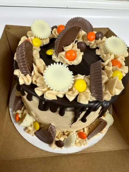 Join the growing fan group of Claudia Garcia and her Farm Girl Bakery, whose exquisite cakes, cookies and cupcakes are making appearances throughout the Sauk Valley area. She'll create this gorgeous 8-inch three-layer Reese's Cake for your special occasion.