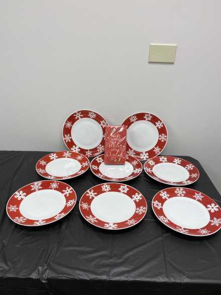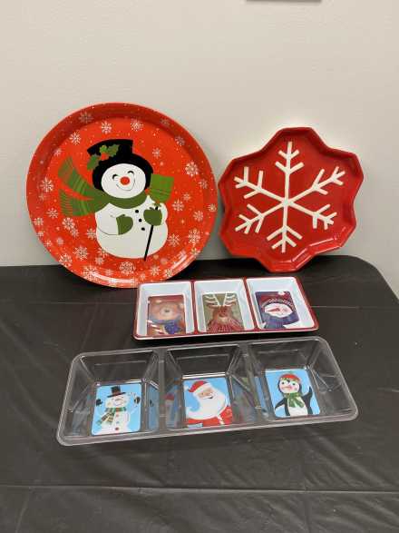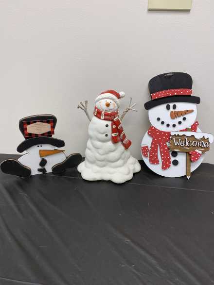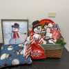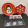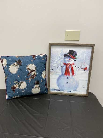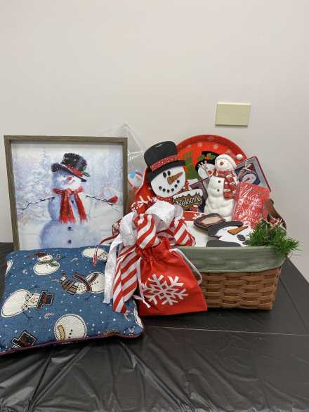 Add to your collection of snowmen with this great basket! Includes 12-inch tall happy snowman, wooden snowman door hanger and snowman table topper, snowman pillow, 15 X 19 inch canvas of snowman, 8 snowflake pattern plates, Christmas napkins, mini snowflake bag, snowman platter, and two 3-section trays, all in a large wicker basket with liner.