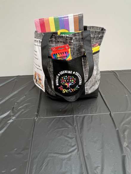 It takes lots of extra supplies to run a classroom! Kit includes 24-count crayons, 10-pack Crayola Markers, 8-pack wipe off crayons, construction paper, Think Positive teacher cup, teacher lunch container, all contained in a "Working, Growing, Succeeding Together" tote bag.