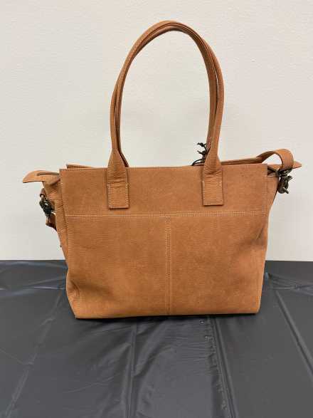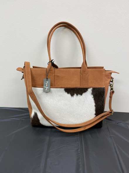 Grab your laptop and other essentials you need for the workday and load up your luxurious real leather and cow's hair zippered purse. Includes two handles and long, adjustable strap.