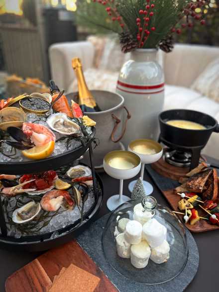 Chateau Champagne for up to 6 ppl - Valid Tuesday 11/26/24 ONLY at the Fairmont Scottsdale Princess - Includes (6) VIP Express Wristbands, (6) Ice Skating Wristbands (Unlimited Skate Time), Complementary Valet Parking for (2) Vehicles, Exclusive semi-private fire table at Chateau Champagne, 30' Christmas Tree Photo Op. F&B Inclusions - Premium Bottle of Champagne, Truffle Gouda Fondue, Shellfish Tower & Caviar, House-Made Petit Fours, Artisanal S'mores Board.