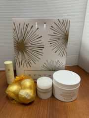 Three bath truffle balls, biodynamic flower essence candle, Zen blend oral tonic .30oz, unscented body polish