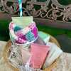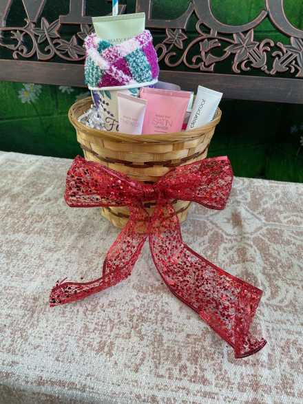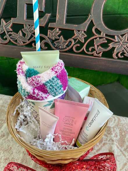 Mint Bliss lotion w/fluffy socks, Sating hands lotion, 2 mini mask (charcoal Mask & Moisturize Renewing Gel Mask), and sample of Hydrogel eye patch.