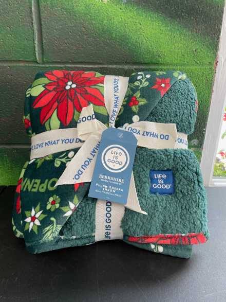 Life is Good Poinsettia Plush Sherpa Throw.  60' x 70" heavy weight throw.