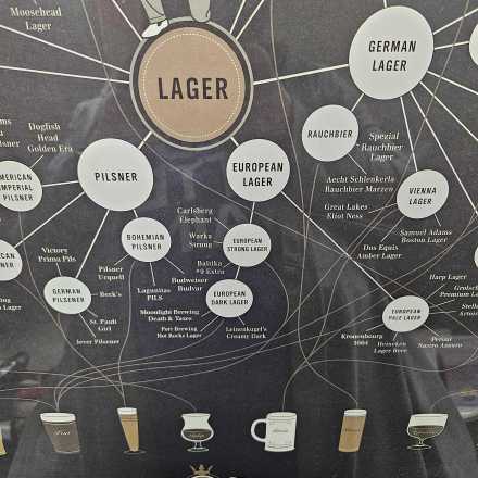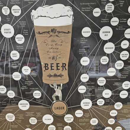 - "The Very, Very Many Varieties of Beer" - Limited Edition Print from Pop Chart Lab, showing a chart of different beer varieties - measures 40.5" tall x 28.5" wide.