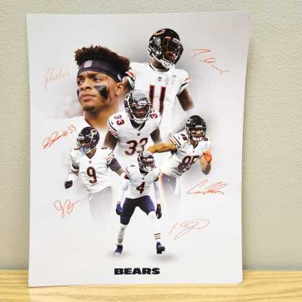 Bears fans will love these two photos, both laser autographed by Chicago Bears players. Autographs featured include Justin Fields, Darnell Mooney, Jaquan Brisker, Cole Kmet, Eddie Jackson, Jaylon Johnson, and more!