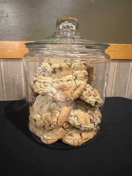 This chocolate chip cookie recipe has been making potluck-goers happy for years! The winning bidder will receive a clear cookie jar full of giant cookies.