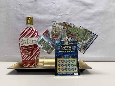 - 1 Bottle of Peppermint Bark Rum Chata with Shot Glass