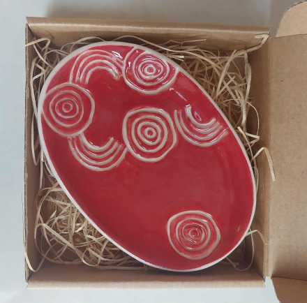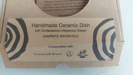 Thanks to Gillian at Corban and Blair for her generous donation. A Handmade Ceramic Dish with Contemporary Indigenous Design. Approx. 18cm dish