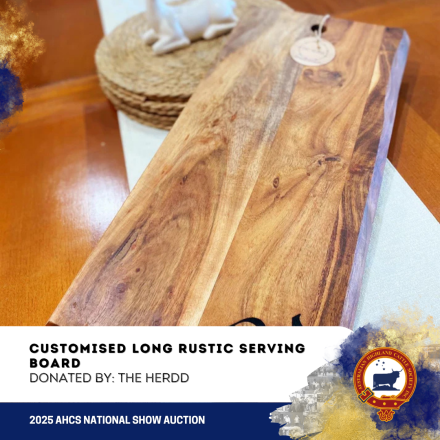 Proudly donated by The Herdd – Home of Custom Laser Engraved Trophy Brushes, Serving Boards & Custom Tags, this piece makes a thoughtful gift or a timeless addition to your home or show display.