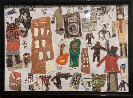 Pen and marker drawing on paper, 20 x 29 cm. This artwork is framed.