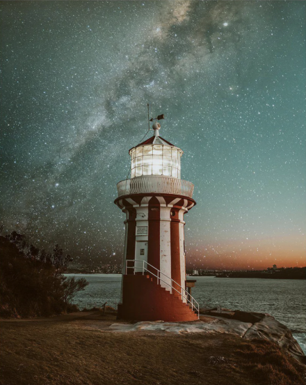 Pudāns and Nguyen are a Sydney-based photographic duo working under the name of Through Our Lens. This print of Hornby Lighthouse, at South Head, near Watsons Bay in Sydney Harbour National Park, is one of their best-known works and is a montage of two separate images.