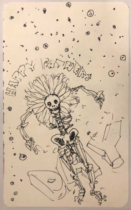 Black fine-liner on paper, 20.8 x 12.7 cm, unframed.