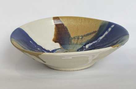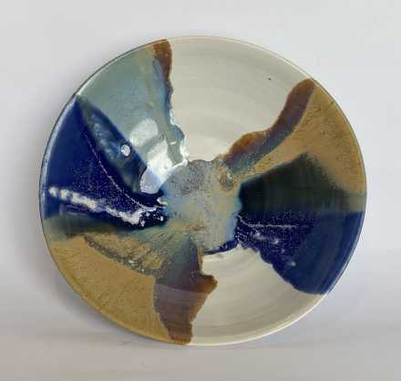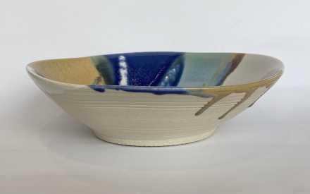 Stoneware ceramic bowl with engravings and coloured glazes, 23 cm (diameter x 6cm (height)