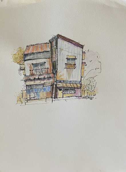 Watercolour and ink on paper, 34 x 34 cm, unframed. Signed and dated lower right.