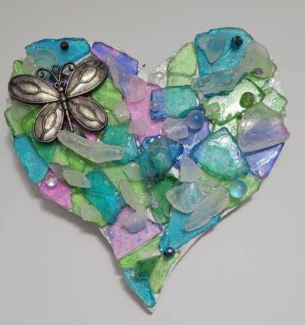 Sea Glass Heart. Made by Local Artist Three Bubbles and a Wish