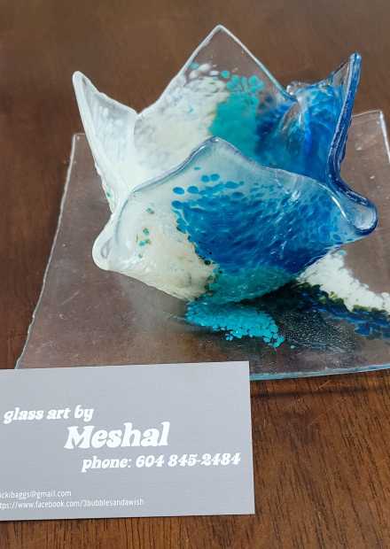 Stained Glass Candle Holder and Tray. Made by Local Artist Three Bubbles and a Wish