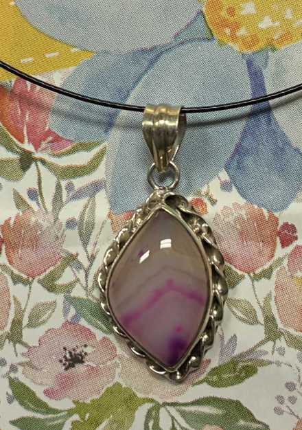 Sterling Silver Botswana Agate pendant necklace - oblong shape
