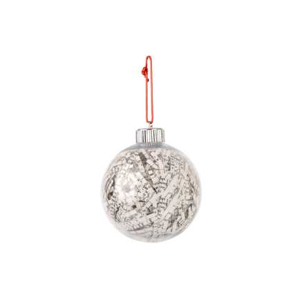 Jenna Lee, paper text fragments, plastic bauble, L 10cm, W 9cm, D 9cm.