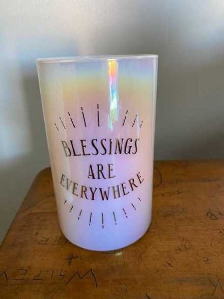 Blessings Are Everywhere candle. Sweet spun sugar scent. 6" high.