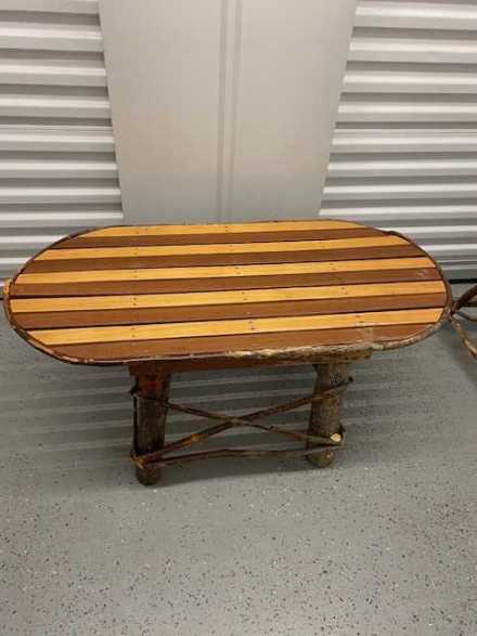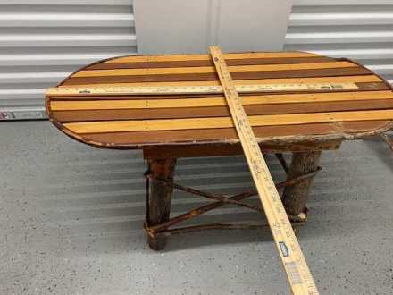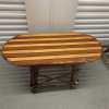 Outdoor table handcrafted oval shaped  measures 41"L x 21" W x 19" H.