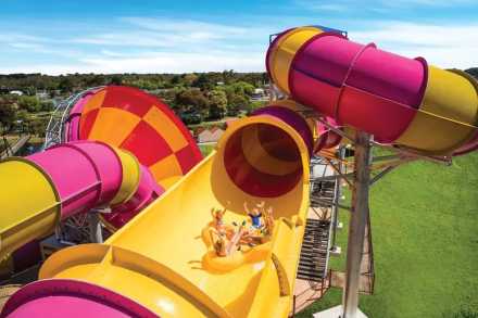 Make a gigantic splash on Victoria's coolest waterslides and rides, like the massive Tsunami and Tornado waterslides.