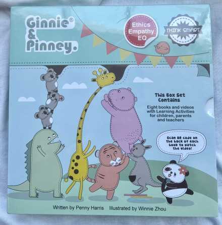 - Ginnie & Pinney, Ethics Empathy EQ 8 book set. With their delightful characters, engaging stories and whimsical approach, the award-winning Ginnie & Pinney Learn & Grow series is a unique and innovative set of books and videos that will encourage ethical thinking, empathy and emotional intelligence in young children. An engaging and award-winning series comprising an 8-book set and free animated videos accompanying each book, accessible by QR Code. The box set also includes access to a comprehensive 64 page Teachers Resource kit.
