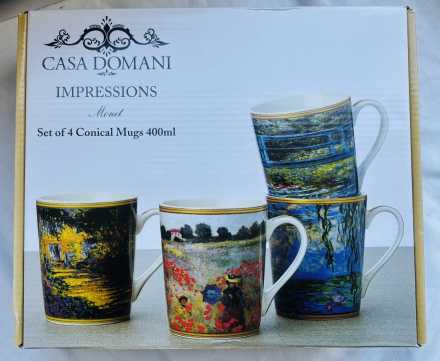 Case Domani Impressions 4 piece porcelain mug set. Dishwasher & microwave safe.