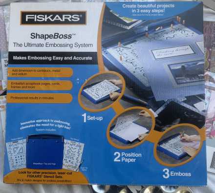 - Fiskars Shape Boss the ultimate embossing system. Box is a little worn but item is new & unused.