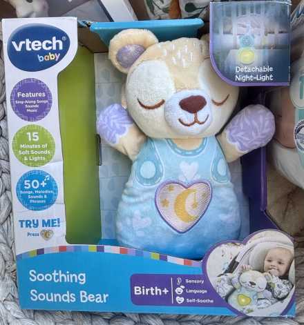 - Vtech baby Soothing Sounds Bear with detachable night light. 50+ songs, melodies, sounds & phrases.