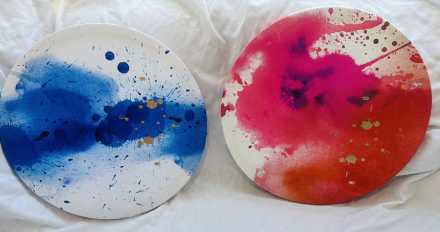 Splashes of color with drops of gold. From Matt Blatt. 40 cm diameter each on canvas.