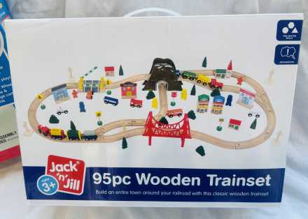 - Jack 'n' Jill 95 piece Wooden Train Set. Build an entire town around your railroad with this classic wooden train set.
