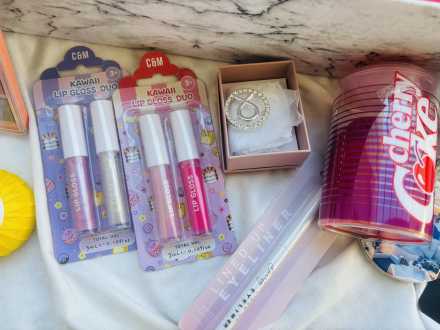 - Konjac sponge - 2 sets C&M Kawaii lip gloss duo. 4 shades in total.