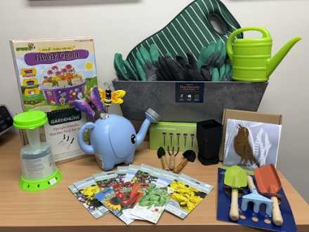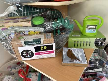 A perfect gardening afternoon sorted! Self watering planter trough, kneeling pad, various garden tools and gardening gloves, bug catcher, kids flower garden kit, watering can, solar powered lights, garden ornaments and australian native seed packets.