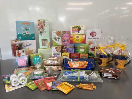 Teapots, mugs, strainers, a huge variety of teas, bikkies to serve with the teas, platters to serve the bikkies on, mood light candles and a scone mix. Ahhhh