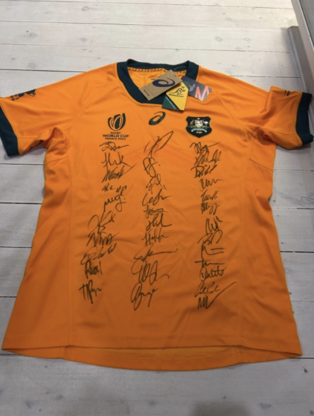 2023 France Rugby World Cup signed Wallabies Jersey PictureTeam signed Wallabies jersey from the 2023 Rugby World Cup in France. The shirt is brand new with tags and signed by all players on the team.
