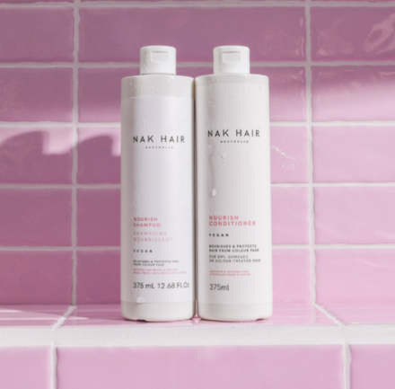 Nak Hair Nourish Shampoo and Conditioner set, Nak Hair Luxe Finishing Creme, and Nak Hair Shine Mist will leave you feeling like you just came out of the salon.