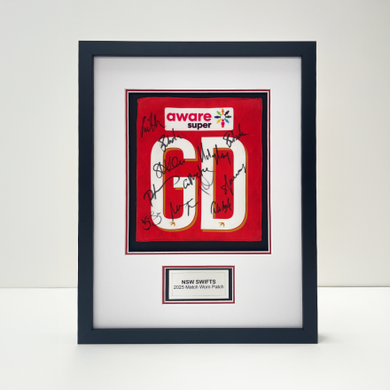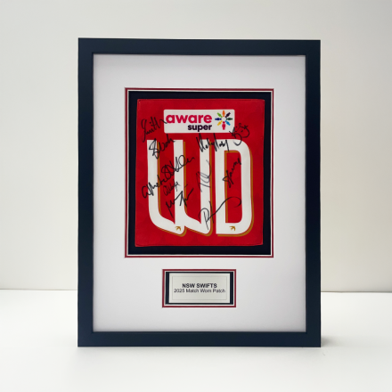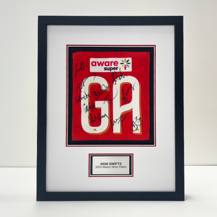 Each item in this exclusive auction has its own story — from match balls and locker signage to player kit and framed match-worn patches. Almost every piece is one-of-a-kind, making it a rare find for any passionate Swifts or sports memorabilia collector.