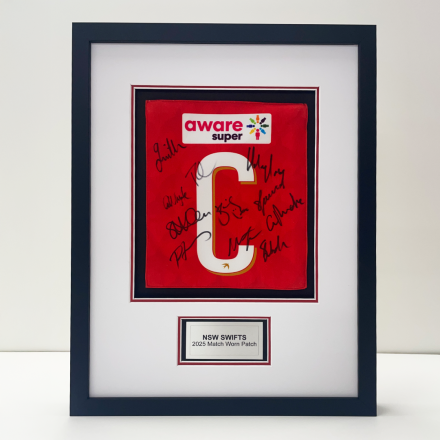 Celebrate the heartbeat of the Swifts with this signed, match-worn NSW Swifts Centre patch from the 2025 Suncorp Super Netball season.